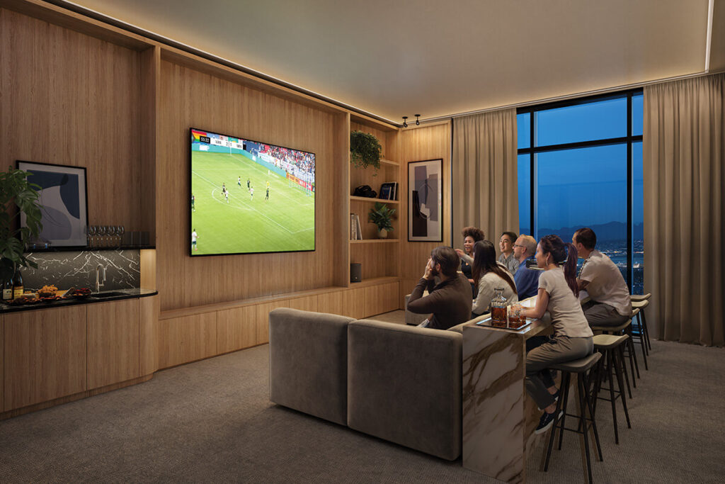 A viewing lounge, with its expansive seating and cinematic screen, becomes the natural gathering place for championship finals, movie nights, or quiet evenings with friends.
